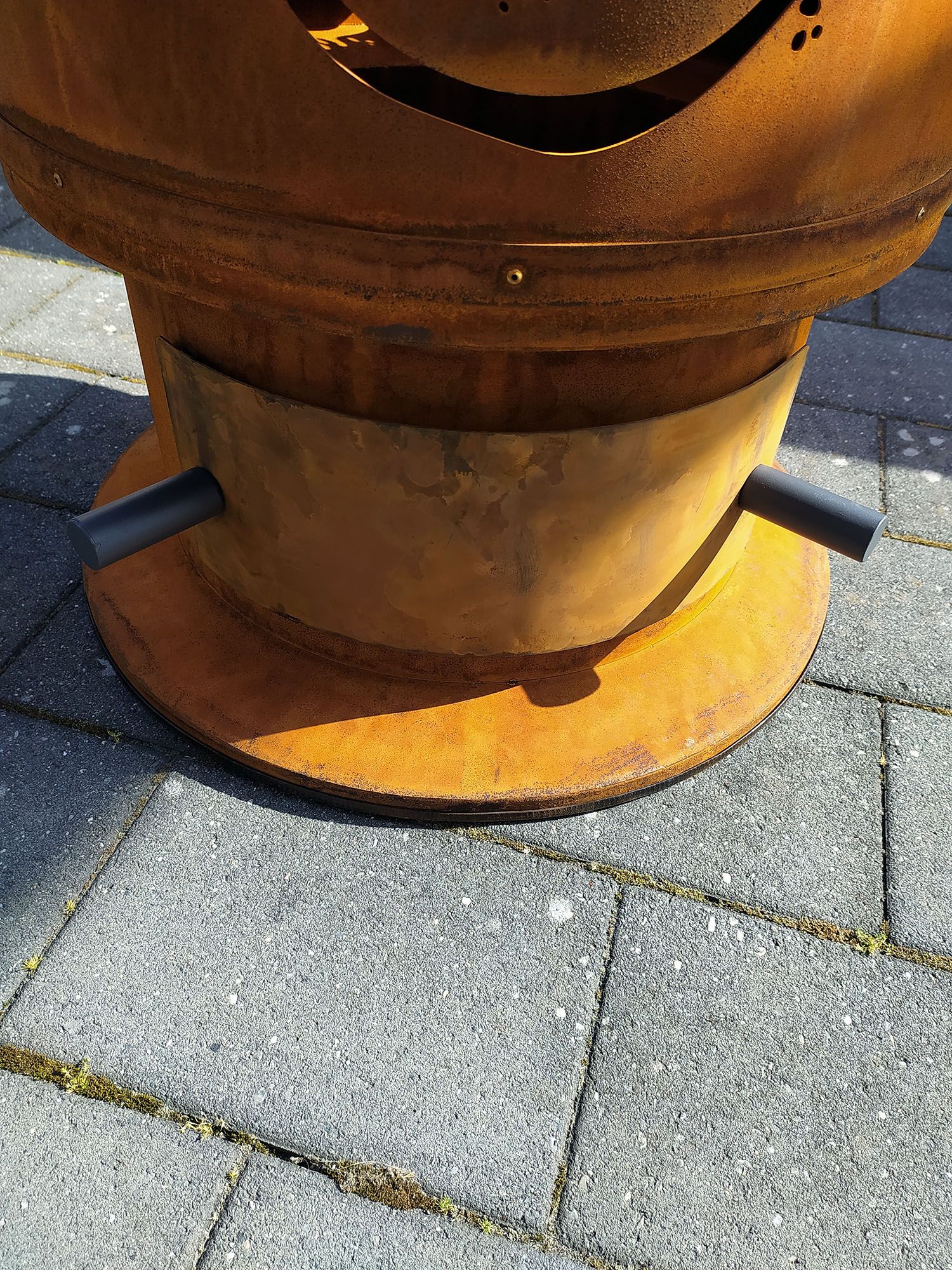 Die aus Cortenstahl gefertigte Feuertonne in Edel-Rost-Optik macht was her und fügt sich gut in das Gartenbild ein. Durch den Absatz im unteren Drittel, der den Ascheauffangbereich von der Brennkammer und dem Grillbereich trennt, wirkt der Bandit eher wie ein Designelement, als eine schnöde Feuertonne.