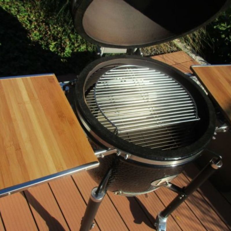 Das Standard Zubehör, (welches im Kauf inbegriffen ist), ist bereits sehr umfangreich. Besonders hervorheben möchte ich den geteilten Deflektorstein, der es problemlos ermöglicht, auch indirekt zu grillen; das „2. Ebene Grillrost“, welches wie das Standardrost aus Edelstahl besteht; die Räucherschiene mit Schieber, die in eine spezielle Klappe im unteren Drittel des Keramikgrills eingesetzt werden kann, um den Grill während des Betriebs mit Räuchermaterial zu befüllen und das ohne den Deckel zu öffnen.