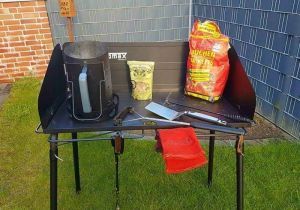 Der Tisch ist jetzt seit ca. 2 Monaten in Gebrauch und ich muss wirklich sagen, dass er jeden Cent wert ist. Ich möchte den Tisch nicht mehr missen. Wenn ihr die Wahl habt, zwischen dem FE45 * und dem FE90, entscheidet euch für den großen Tisch. Denn eines ist doch sicher, ein Dutch Oven bleibt niemals allein.