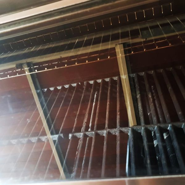 Ich bin eigentlich immer jemand gewesen der lieber grillt, als dass er seinen Grill sauber hält. Ich muss mich leider dazu zwingen meinen Grill sauber zu machen. Im Sommer hatte ich folgendes Malheur: ich habe den Grill einige Male genutzt, ihn aber anschließend nicht gepflegt und gesäubert. Beim nächsten Grillen hatte ich einen kleinen Fettbrand in der Fettauffangwanne. Das wichtigste dabei ist die Ruhe zu bewahren und zuerst die Gasflasche zuzudrehen. AUF KEINEN FALL WASSER ZUM LÖSCHEN NUTZEN! Ich habe die Fettwanne herausgezogen und vorsichtig zur Seite gestellt. Es war draußen schon recht dunkel, trotzdem konnte ich bereits erahnen, dass die Scheibe komplett eingesaut war. Da wir auf dem Sprung zu Freunden waren, habe ich den Grill erstmal so in die Garage gestellt. Nach ein paar Tagen habe ich mir den Grill nochmal angeschaut: Gott sei Dank alles in Ordnung und soweit nichts passiert, außer dass die Scheibe komplett schwarz war.