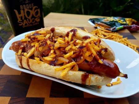 Der Plan sah etwas anders aus, aber dieser Hot Dog war einer der Besten, die ich jemals gegessen habe. Die Hog Sauce von BBQUE ist sicher für etwas Anderes vorgesehen, aber auf Hot Dog passt sie perfekt. Dazu die Fritt Sticks als Topping, einfach sensationell. Vergesst Nachos oder Chips als Topping, verwendet beim nächsten Mal einfach die Fritt Sticks.
