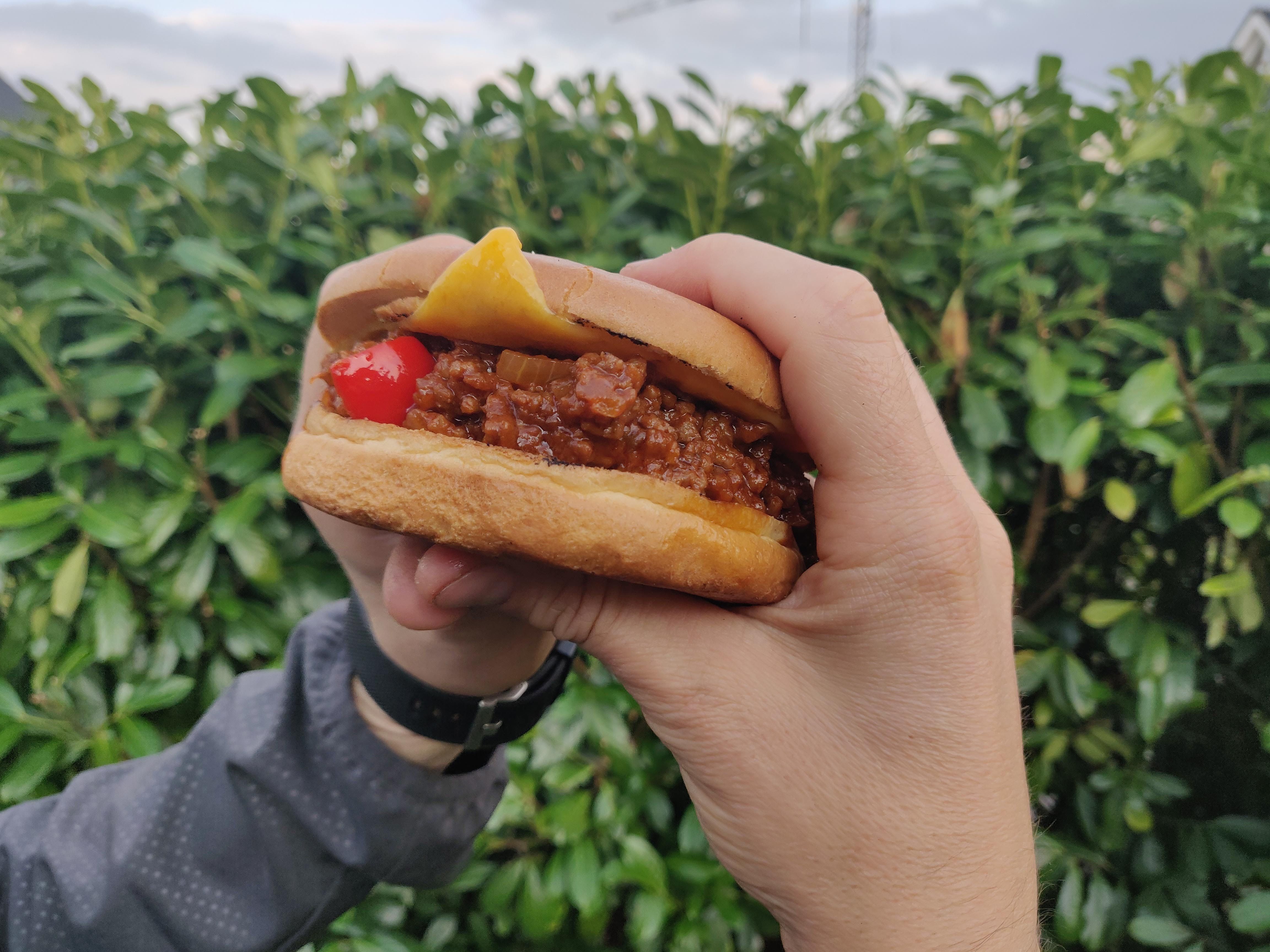 Achtung: Kleckern ist hier vorprogrammiert! Das ist ein Burger ganz nach unserem Geschmack. Richtig schön saftig, schmierig und lecker!