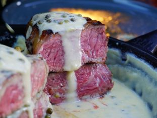 Wir sind zwar davon überzeugt, dass ein gutes Steak auch ohne eine Soße auskommt, aber wenn, dann darf es gerne eine würzige Pfefferrahmsoße sein. Diese hier ist extra pikant und cremig. Wir haben unsere Rumpsteaks der Gebrüder Külbs auf einer Griddle-Plate auf dem Monolith Keramikgrill bei direkter Hitze scharf angegrillt und sie anschließend im indirekten Bereich bei ca. 100 Grad nachziehen lassen.