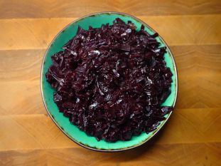 Vor dem Servieren abschmecken und wenn möglich die Lorbeerblätter und Nelken entfernen. Tipp: wenn Ihr die Nelken in einem Teeei oder Teebeutel in Euren Rotkohl gebt, könnt Ihr sie ganz einfach entfernen. Lasst es Euch schmecken!