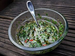 Chimi Churri ist die perfekte Sauce zu Steaks. Aber auch zu ganzen Braten, Fisch, oder Kartoffeln entfaltet sich der fantastische Geschmack. Die Chimichurri wird umso aromatischer, je länger ihr sie ziehen lasst. Wir sind absolut begeistert von der würzigen Kräuter-Mischung!