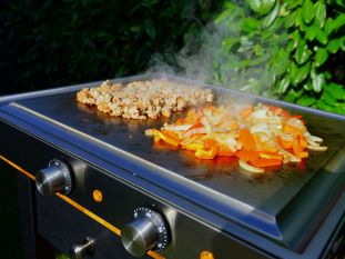 Den Teppanyaki Grill auf beiden Seiten auf 200 Grad einregeln und einen Klecks Sonnenblumenöl auf der Grillfläche verteilen.