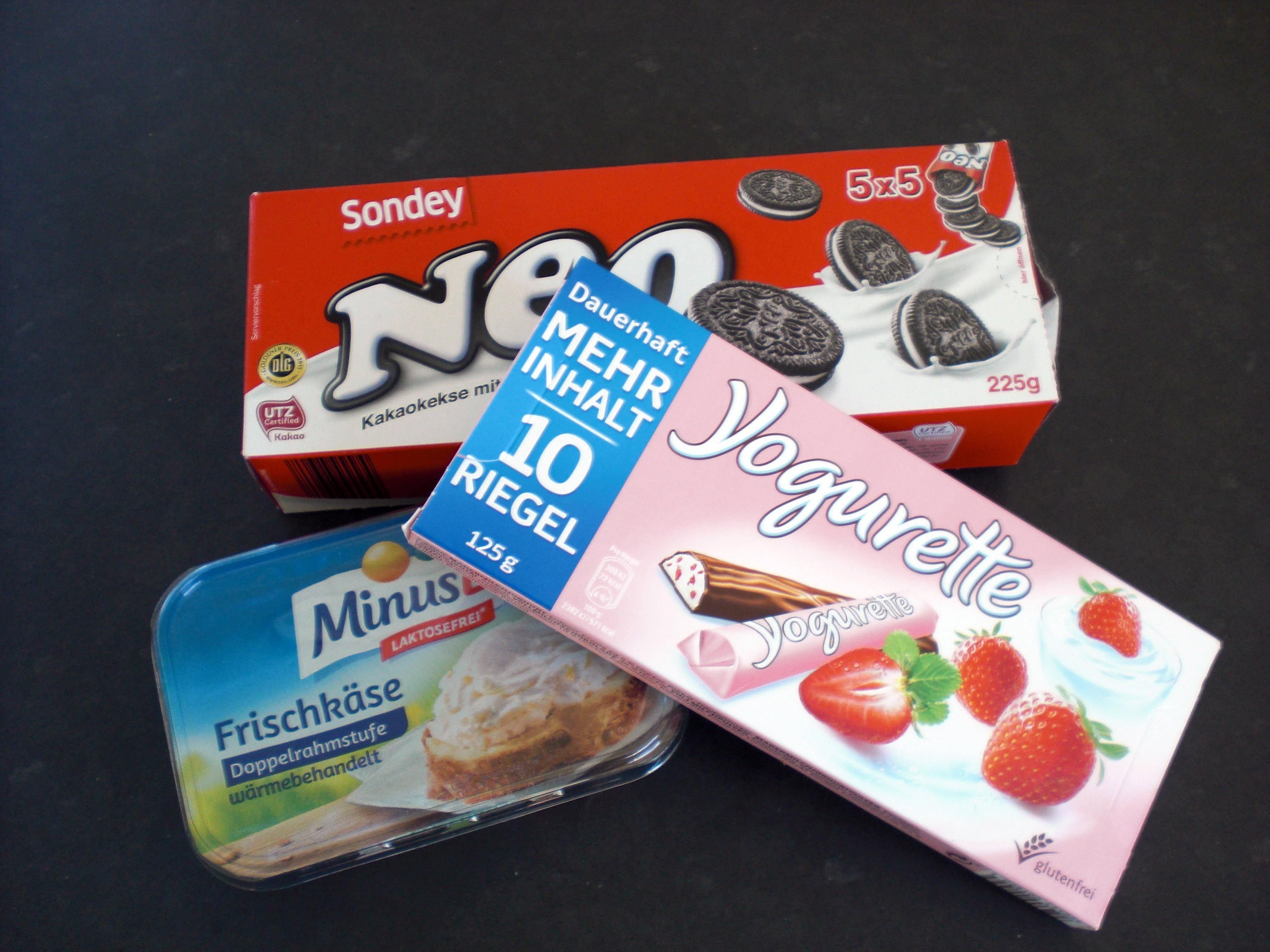 Die Creme von den Keksen kratzen und zum Frischkäse in eine Schüssel geben. Die Jogurette zerhacken, die Kekse zerbröseln und beides zu der Frischkäsecreme geben. Alle Zutaten miteinader vermengen und kleine Kugeln formen oder die Masse flach ausstreichen und mit einer Ausstechform in die gewünschte Form bringen (Tipp: das Formen funktioniert besser wenn die Mischung gekühlt ist).