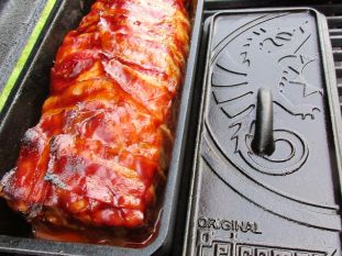 Zum Servieren einfach den Braten aus der Kastenform nehmen und in dünnen Tranchen vorne wegschneiden - spätestens wenn Euch der Käse beim Anschnitt entgegenläuft wird Euren Gästen das Wasser im Mund zusammenlaufen.