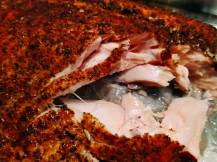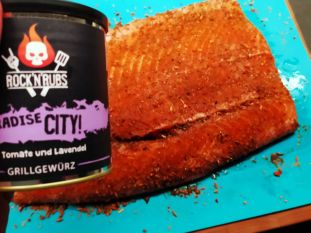 Das Paradise City Rub* verleiht dem Fisch ein angenehmes, würziges Aroma. Ich war zuerst skeptisch wegen dem Lavendel in der Würzmischung. Aber dieser bleibt dezent im Hintergrund. Dazu kommt die angenehme Säure der Mandarinen. Ihr könnt statt Mandarinen natürlich auch jede andere Zitrusfrucht zum indirekten Grillen verwenden. Wir haben mal ein Pulled Chicken auf Orangenscheiben gemacht – das funktioniert auch sehr gut. Keinen Bock auf Zitrusfrüchte? Dann verwendet einfach eine Holzplanke*.