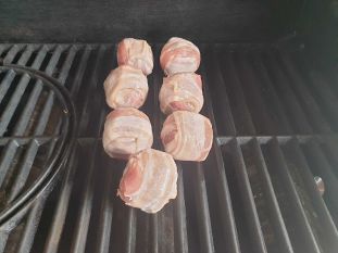 Wir haben unsere gefüllten Moinkballs bei 180 Grad im indirekten Grillbereich unseres Rösle Videro G4S zubereitet.