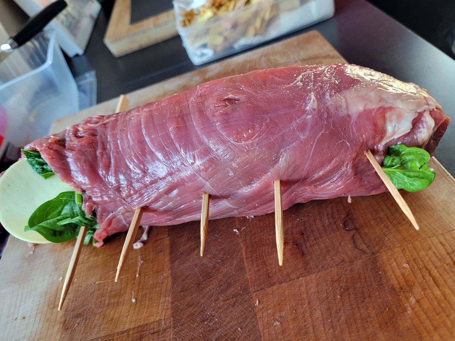 Wir haben uns ein Flanksteak beim Fleischer unseres Vertrauens geholt – Fleischerei Rathsmann in Lünne. Das Steak hat ein Gewicht von ca. 700 g. Ihr könnt dieses Gericht aber natürlich auch mit leichteren, oder schwereren Flanks zubereiten. Wichtig ist, dass das Flank nicht zu dünn ist, damit Ihr es mittig einschneiden könnt, um es aufzuklappen und zu befüllen.