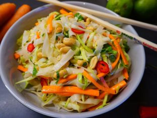 Beim Grillen kommt es nicht nur auf das Grillgut an. Auch die Nebendarsteller wie Salate, Dips und Brote sind sehr wichtig. Dabei darf es auch gerne mal was anderes, neues sein, womit wir unsere Gäste überraschen und begeistern wollen. Daher zeigen wir Euch unseren herrlich aromatischen, asiatischen Reisnudelsalat. Ein Gruß aus dem Osten an den heimischen Grill.
