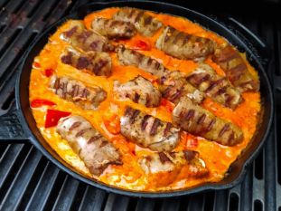 Wir haben unsere Gyros Rouladen in Metaxasauce auf unserem Rösle Magnum Pro G4 zubereitet.