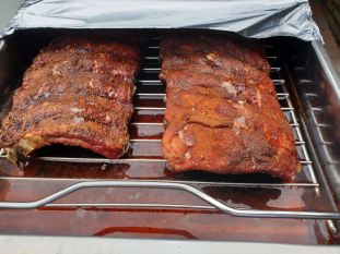 Die Ribs lassen sich sehr leicht vom Knochen lösen und fallen quasi auseinander. Auch der Rauchgeschmack aus Phase 1 ist zu schmecken. Probiert das mal aus, dass ist ne super leckere Geschichte.