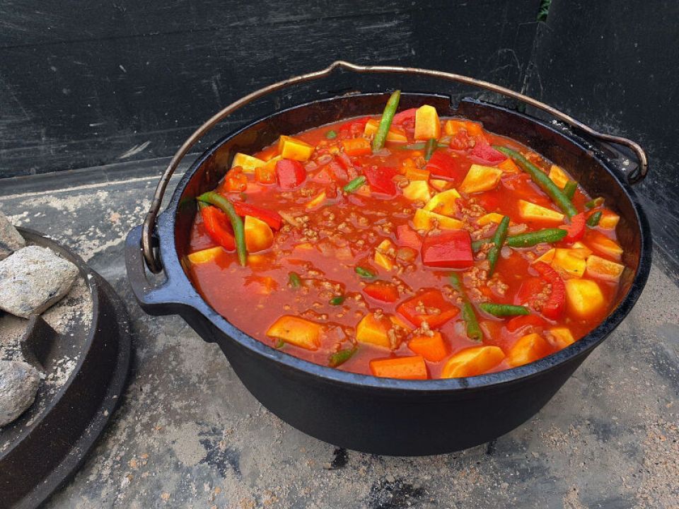 Solche Gerichte sind immer super lecker. Schnell und ganz einfach zubereitet. Dazu könnt ihr immer etwas davon auf Vorrat kochen, also ruhig den Dutch Oven komplett voll packen. Wenn es tatsächlich Reste geben sollte, könnt ihr diese prima einfrieren. Wir sind begeistert und können euch nur raten: probiert diesen schmackhaften Bauerntopf unbedingt mal aus!