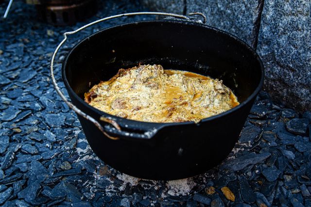 Dutch Oven ist nur 'eine' Bezeichnung eines gusseisernen Topfes, er ist u.a. auch als Dopf, Potjie, Feuertopf, Black Pot, Camp Oven, Kazan und wahrscheinlich noch "tausend" anderer Namen bekannt. Ihr könnt ihn direkt in die Glut eines Feuers stellen, oder auch über ein Lagerfeuer hängen. Ich nutze ihn meistens indem ich Briketts in einem Anzündkamin anfeuere und diese dann je nach Bedarf unter und/oder auf dem Dopfdeckel platziere. Oder ich stelle ihn einfach in den Grill.