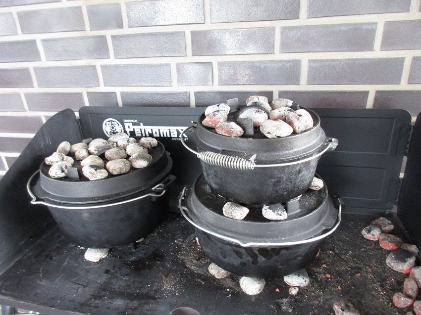 Ein gusseiserner Topf in dem Ihr alles Mögliche garen, schmoren, kochen, backen… könnt. Ihr könnt Euren DO direkt in die Glut stellen, Briketts auf den Deckel legen, oder ihn auf dem Grill einsetzten.